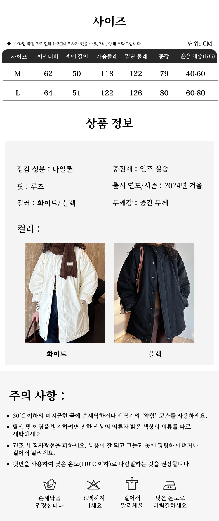 사이즈 및 색상