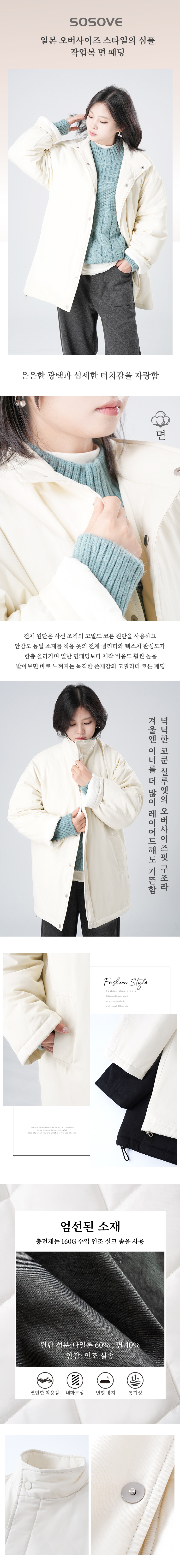 일본 오버사이즈 스타일의 심플 작업복 면 패딩
